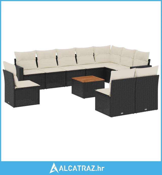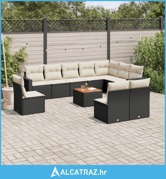 11-dijelni set vrtnih sofa od poliratana s jastucima crni - NOVO