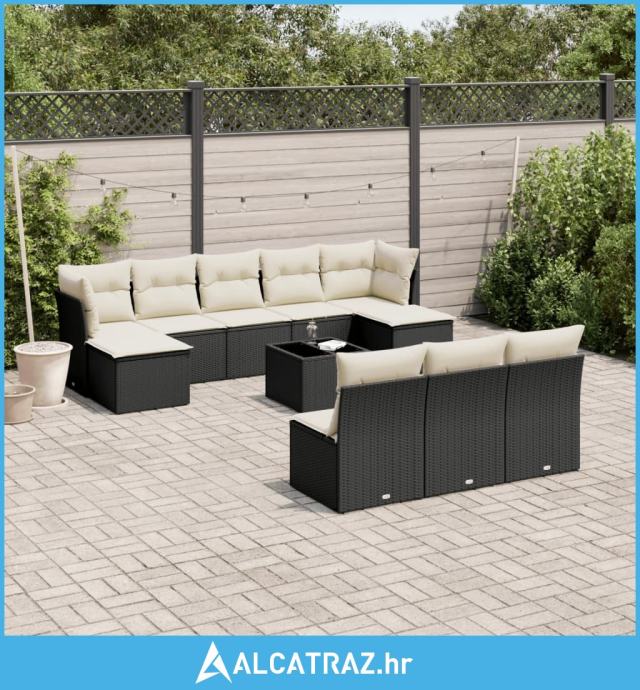 11-dijelni set vrtnih sofa od poliratana s jastucima crni - NOVO