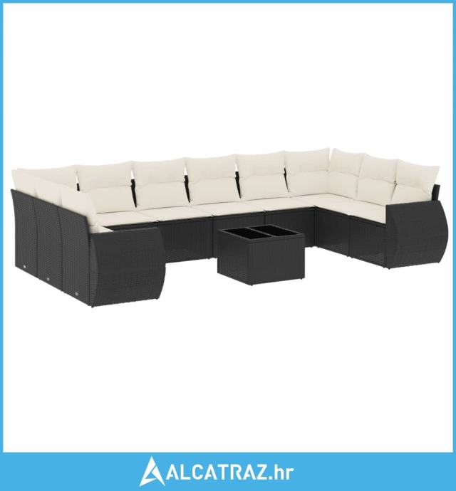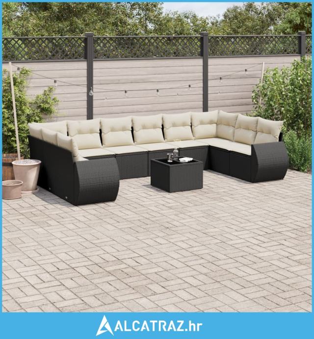 11-dijelni set vrtnih sofa od poliratana s jastucima crni - NOVO