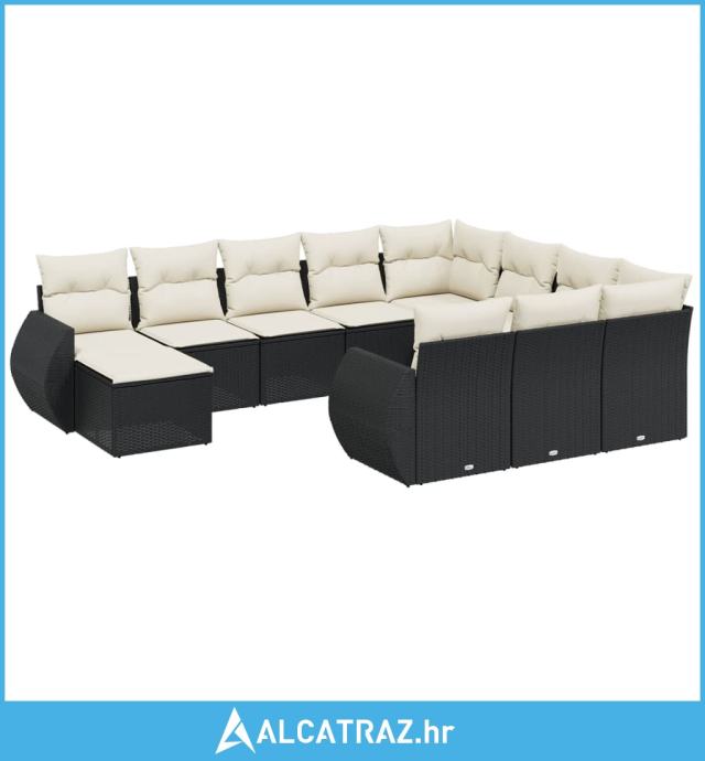 11-dijelni set vrtnih sofa od poliratana s jastucima crni - NOVO