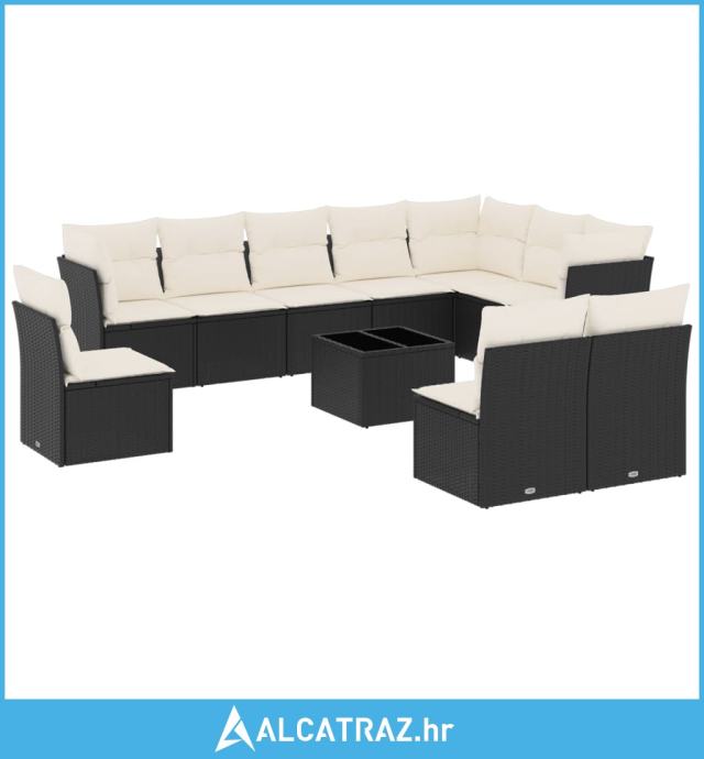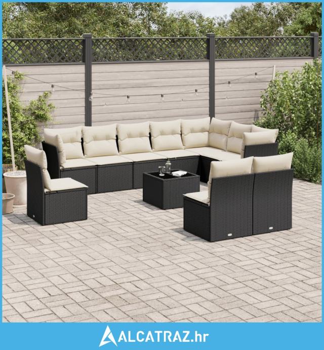 11-dijelni set vrtnih sofa od poliratana s jastucima crni - NOVO