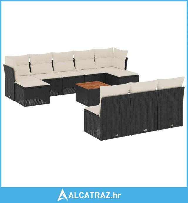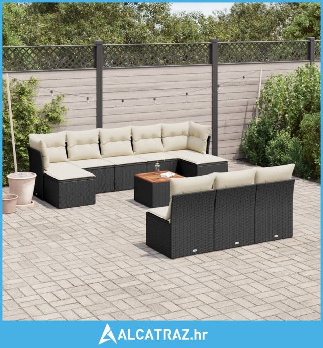 11-dijelni set vrtnih sofa od poliratana s jastucima crni - NOVO