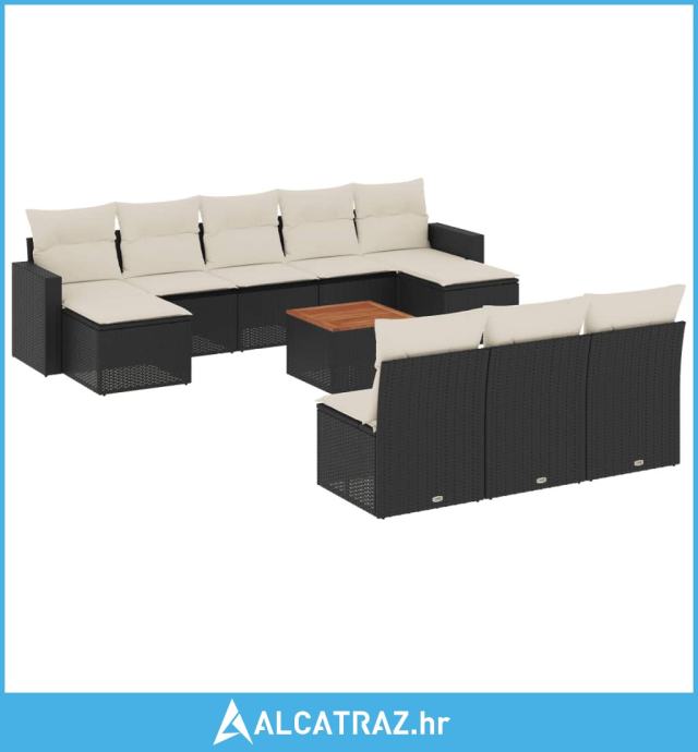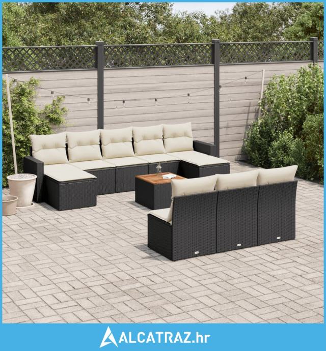 11-dijelni set vrtnih sofa od poliratana s jastucima crni - NOVO