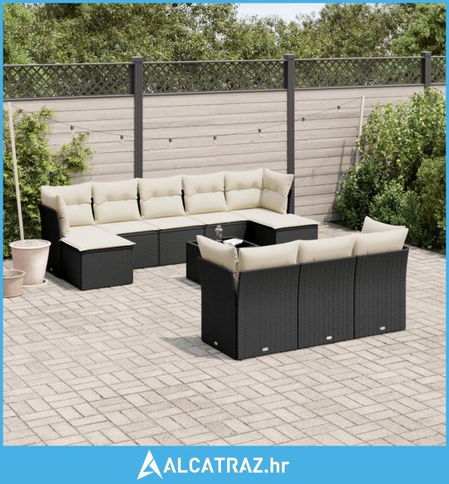 11-dijelni set vrtnih sofa od poliratana s jastucima crni - NOVO