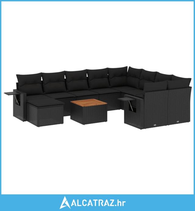 11-dijelni set vrtnih sofa od poliratana s jastucima crni - NOVO