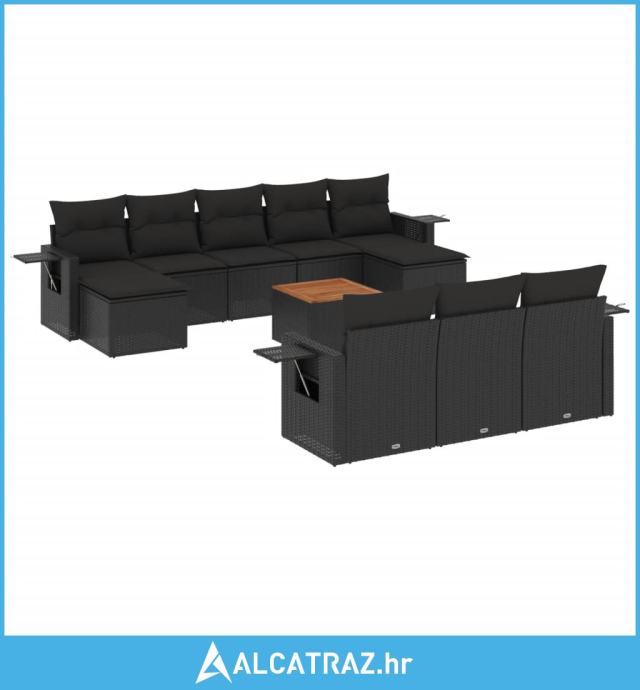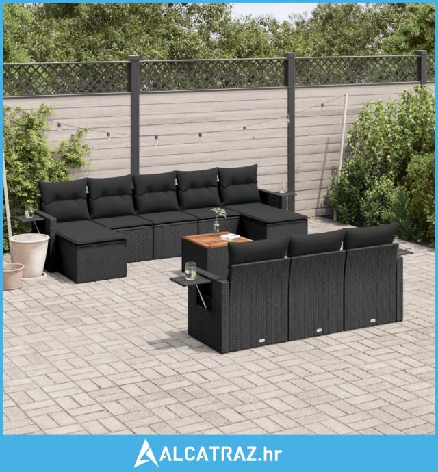 11-dijelni set vrtnih sofa od poliratana s jastucima crni - NOVO