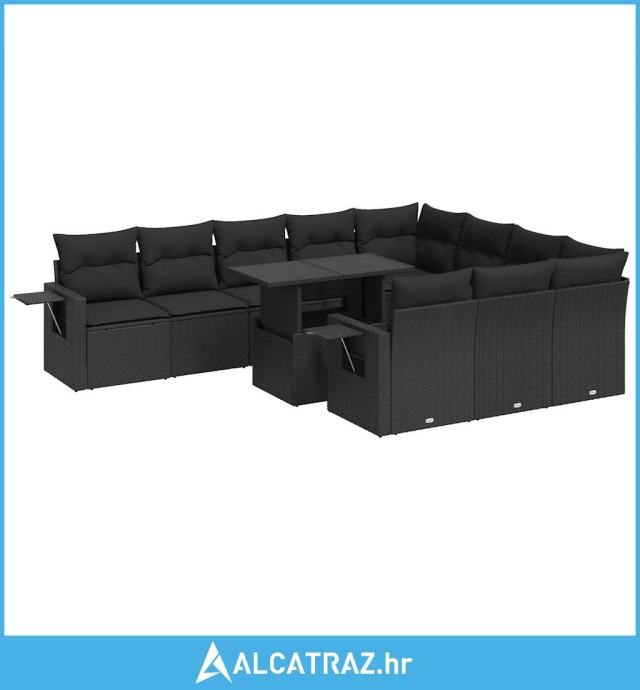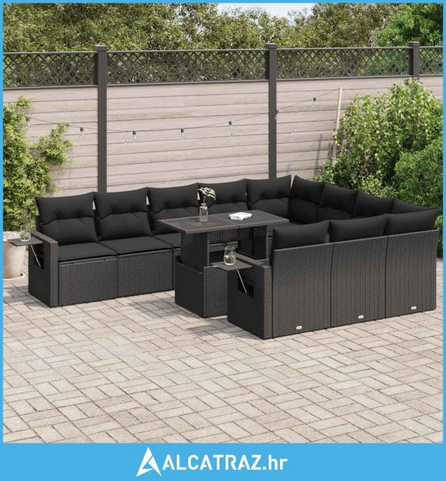 11-dijelni set vrtnih sofa od poliratana s jastucima crni - NOVO
