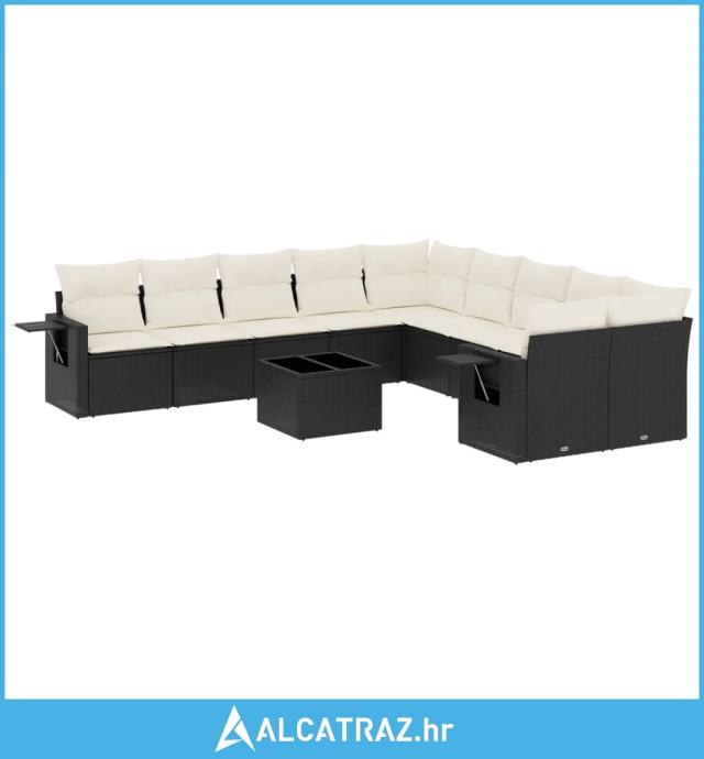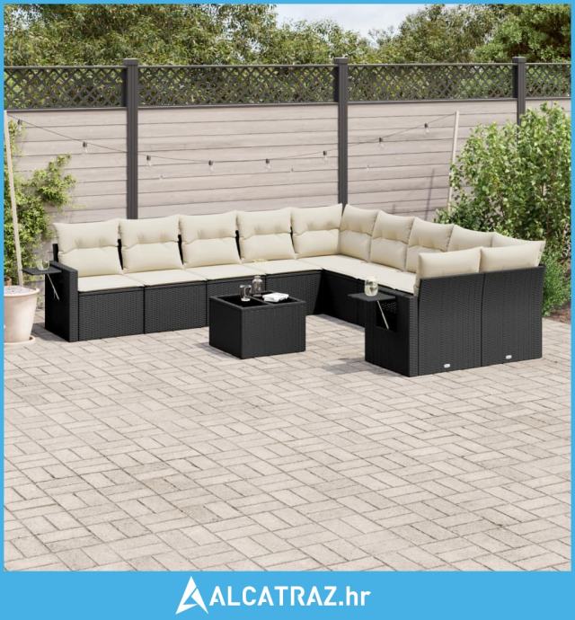 11-dijelni set vrtnih sofa od poliratana s jastucima crni - NOVO