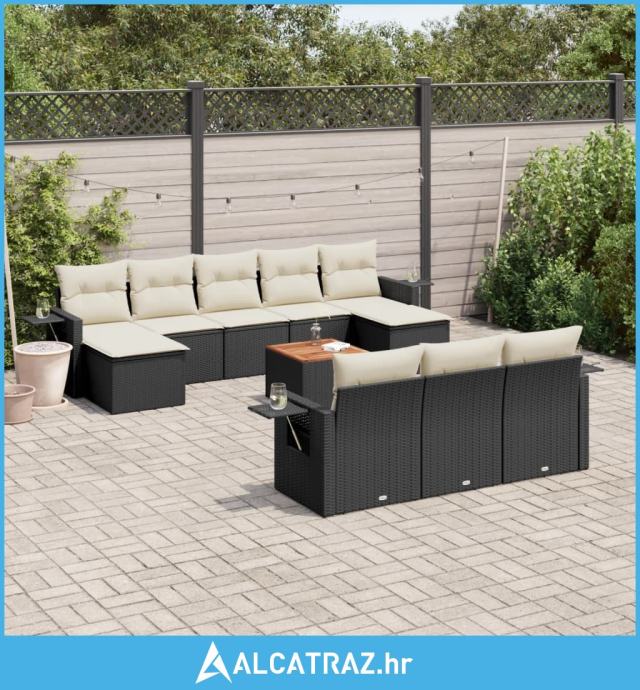 11-dijelni set vrtnih sofa od poliratana s jastucima crni - NOVO