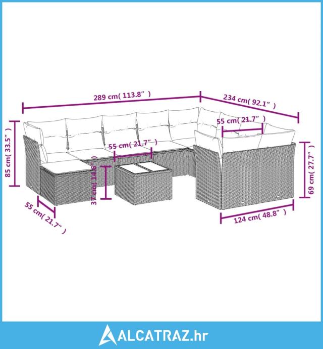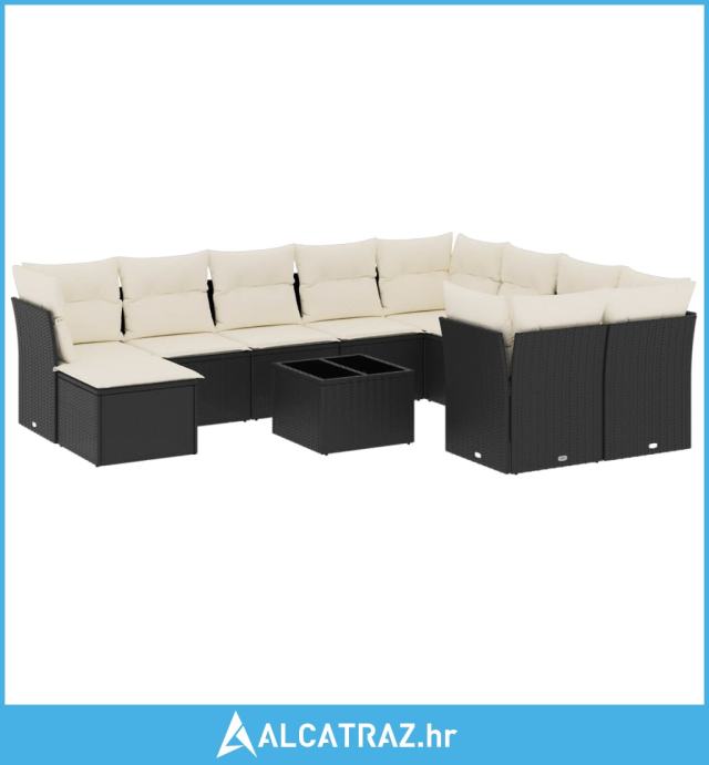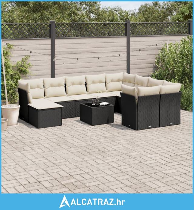 11-dijelni set vrtnih sofa od poliratana s jastucima crni - NOVO