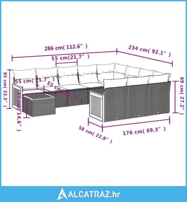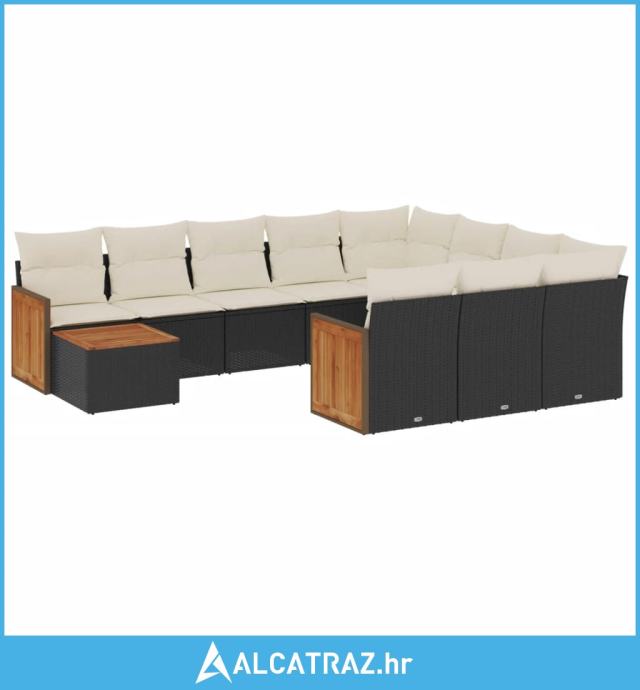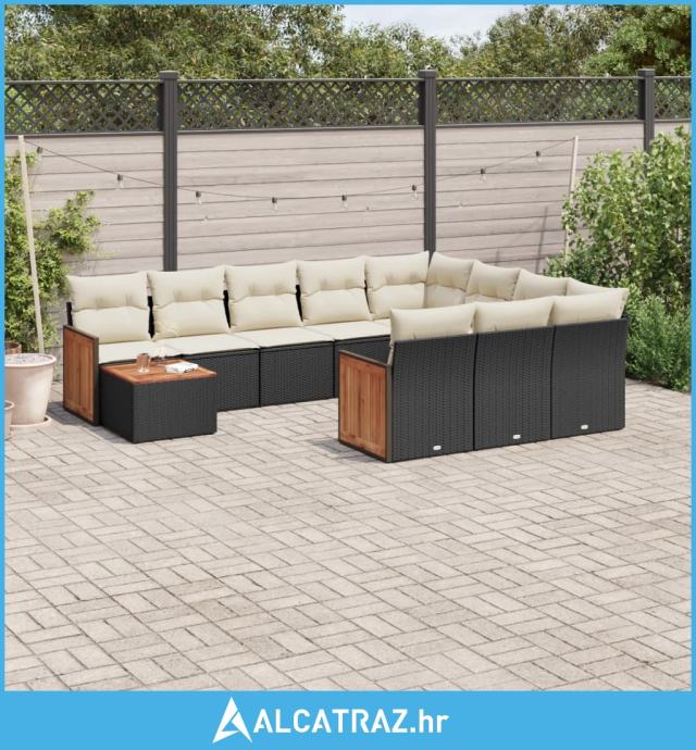 11-dijelni set vrtnih sofa od poliratana s jastucima crni - NOVO