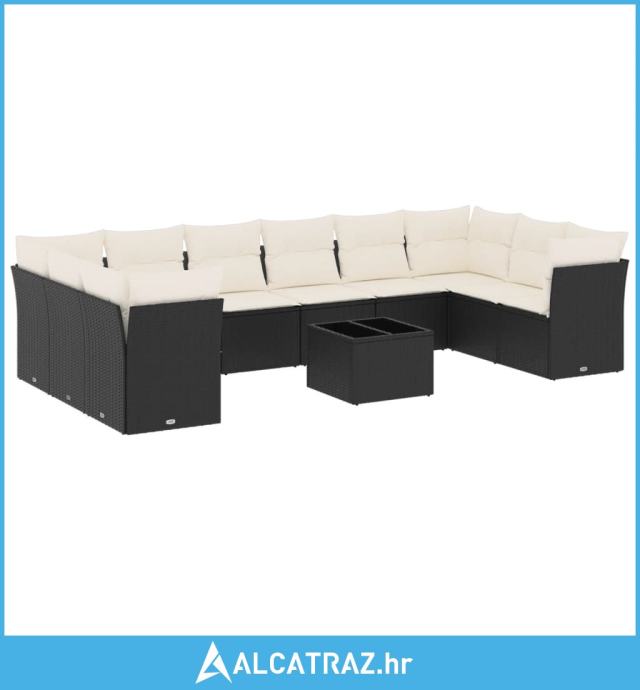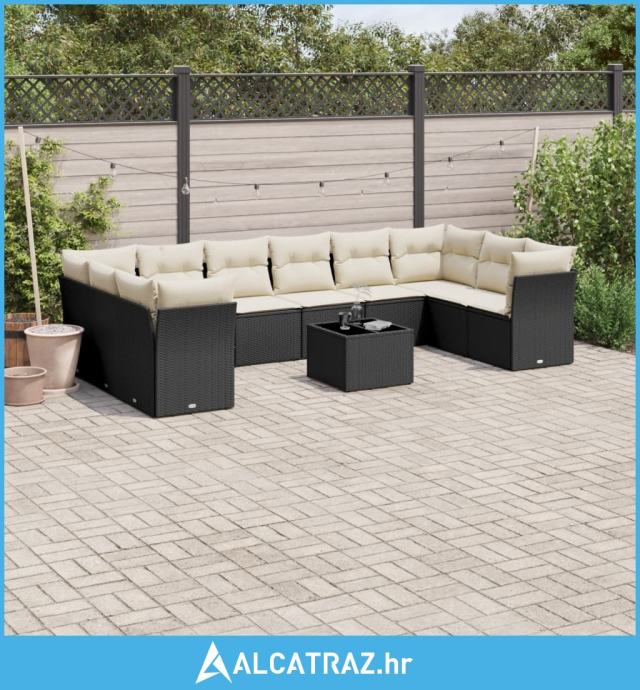 11-dijelni set vrtnih sofa od poliratana s jastucima crni - NOVO