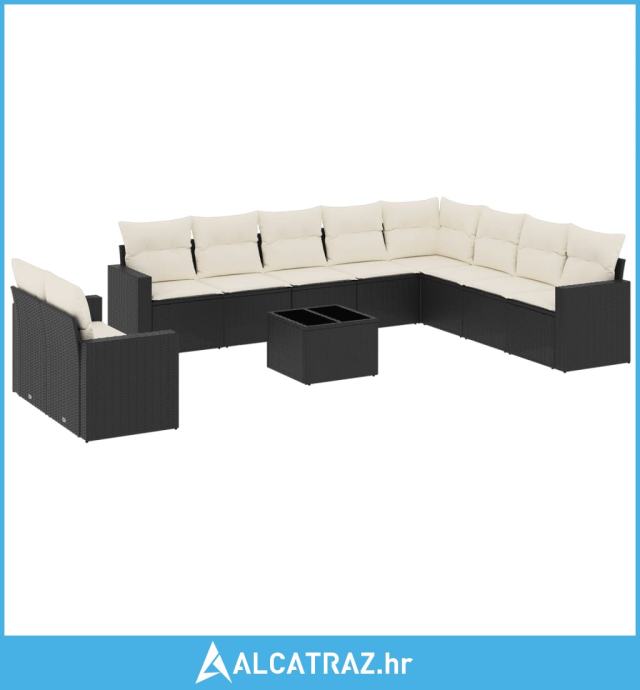 11-dijelni set vrtnih sofa od poliratana s jastucima crni - NOVO