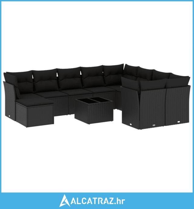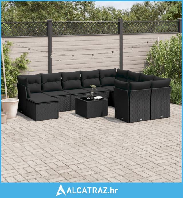 11-dijelni set vrtnih sofa od poliratana s jastucima crni - NOVO