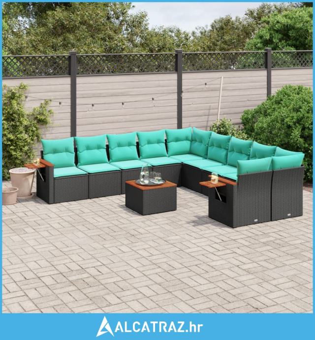 11-dijelni set vrtnih sofa od poliratana s jastucima crni - NOVO
