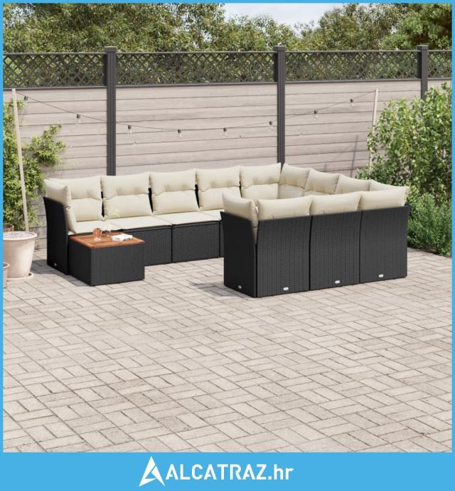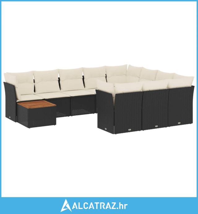 11-dijelni set vrtnih sofa od poliratana s jastucima crni - NOVO