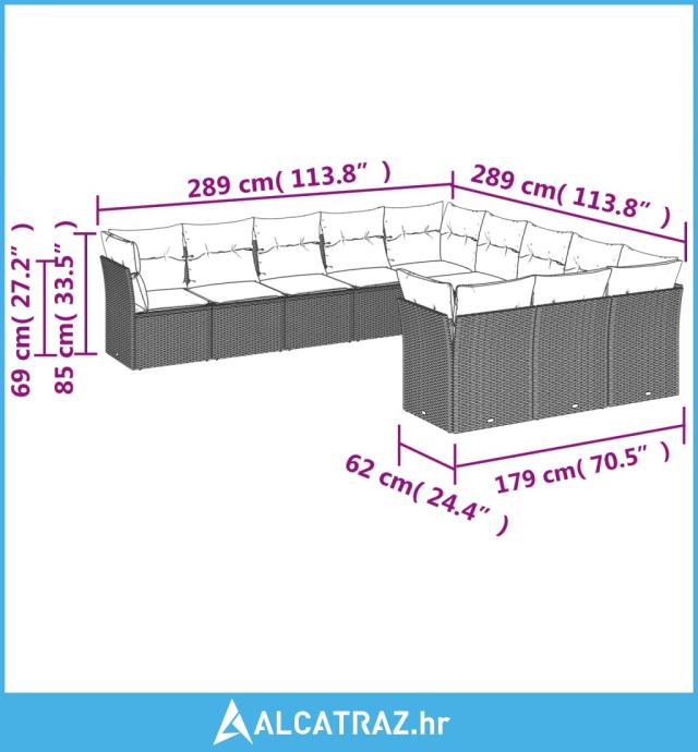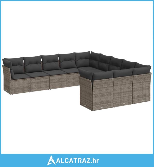 11-dijelni set vrtnih sofa od poliratana s jastucima sivi - NOVO