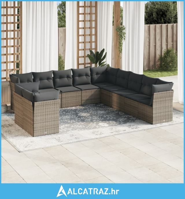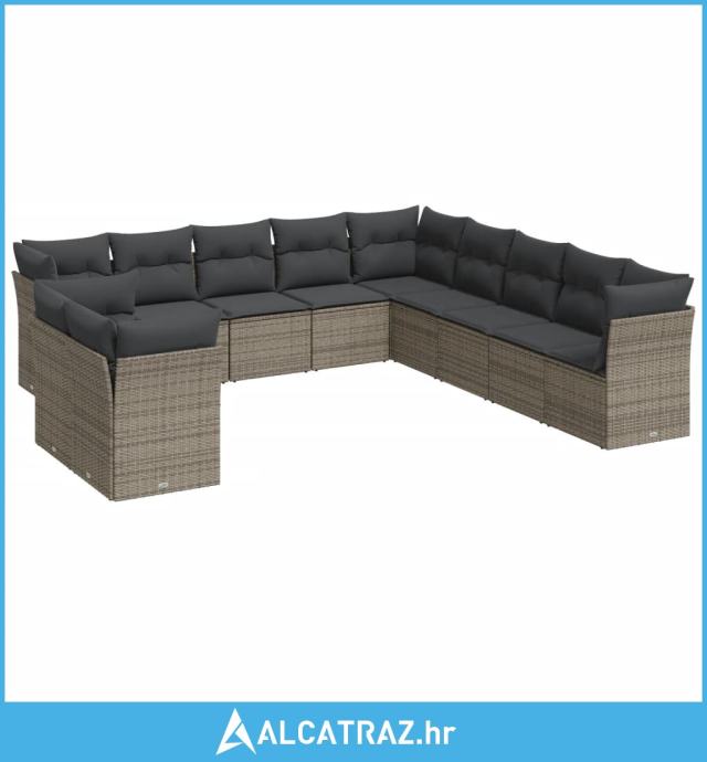 11-dijelni set vrtnih sofa od poliratana s jastucima sivi - NOVO