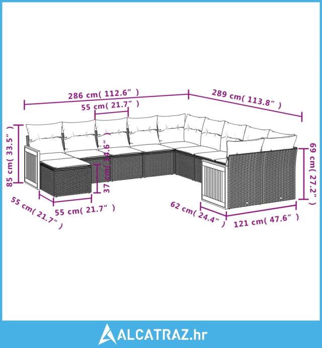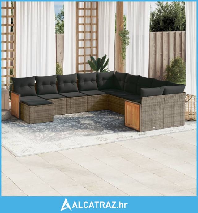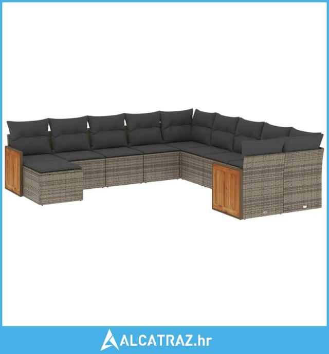 11-dijelni set vrtnih sofa od poliratana s jastucima sivi - NOVO