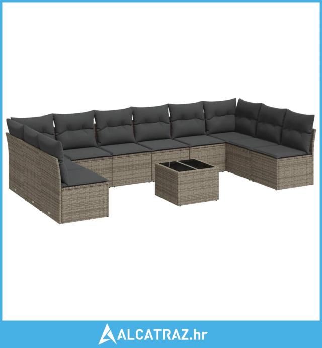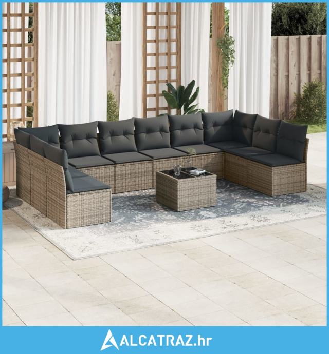 11-dijelni set vrtnih sofa od poliratana s jastucima sivi - NOVO