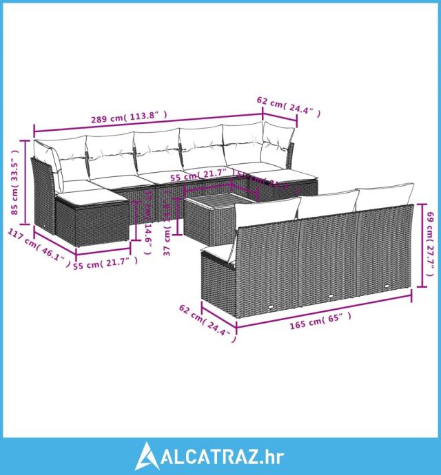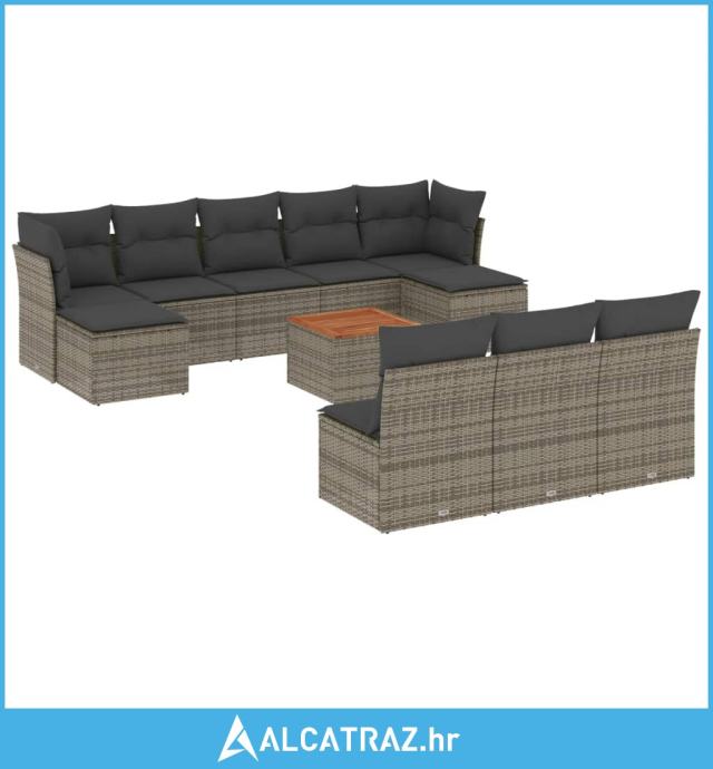 11-dijelni set vrtnih sofa od poliratana s jastucima sivi - NOVO
