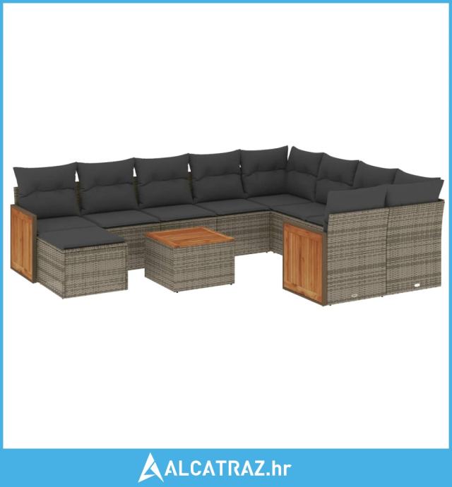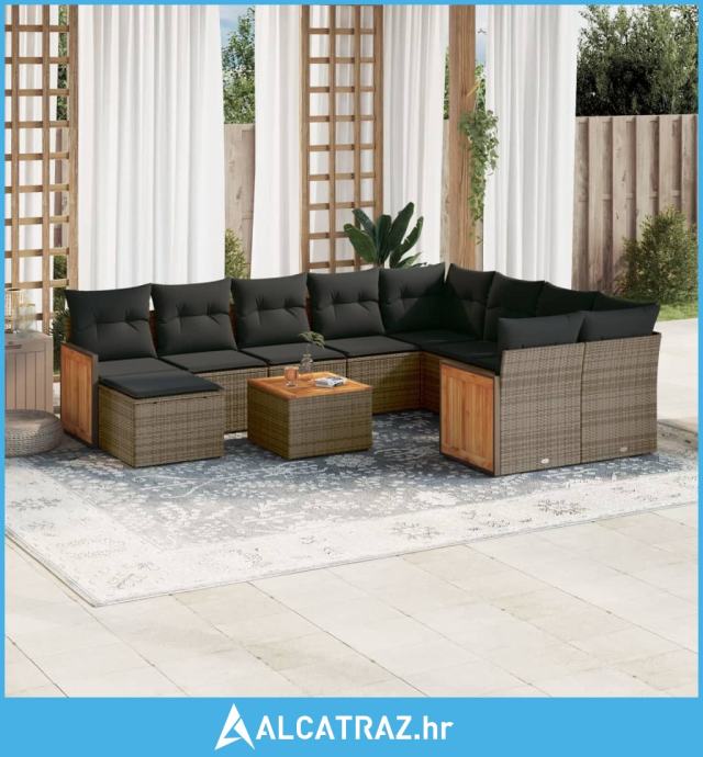 11-dijelni set vrtnih sofa od poliratana s jastucima sivi - NOVO