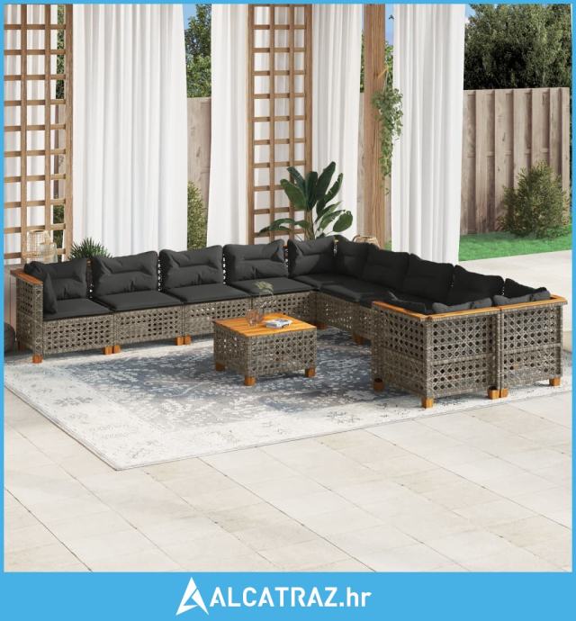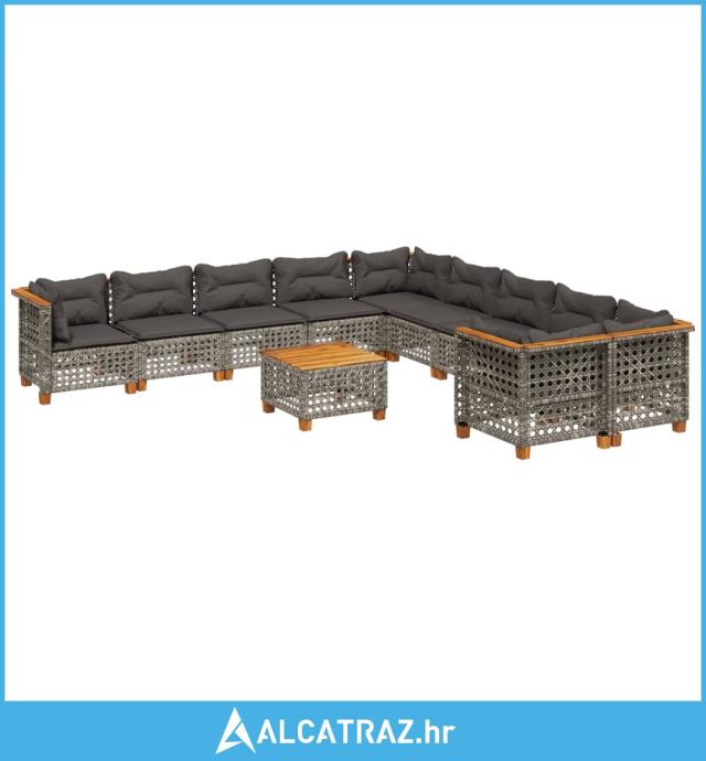 11-dijelni set vrtnih sofa od poliratana s jastucima sivi - NOVO