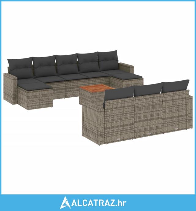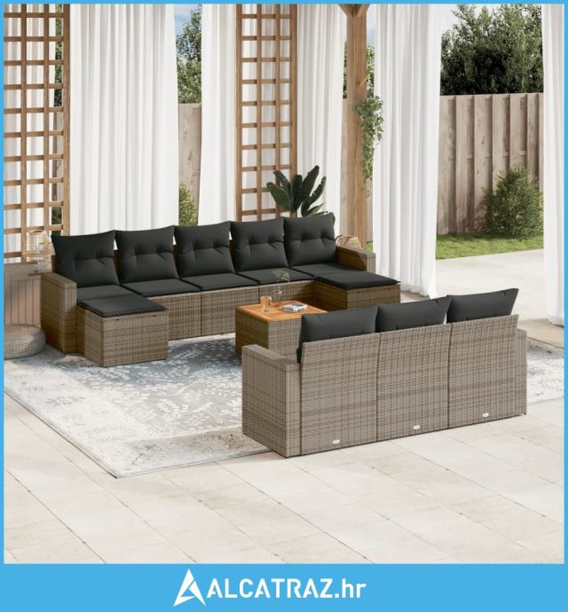 11-dijelni set vrtnih sofa od poliratana s jastucima sivi - NOVO