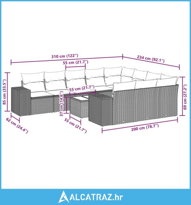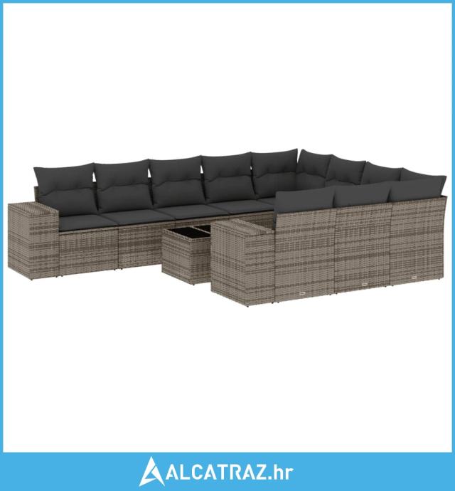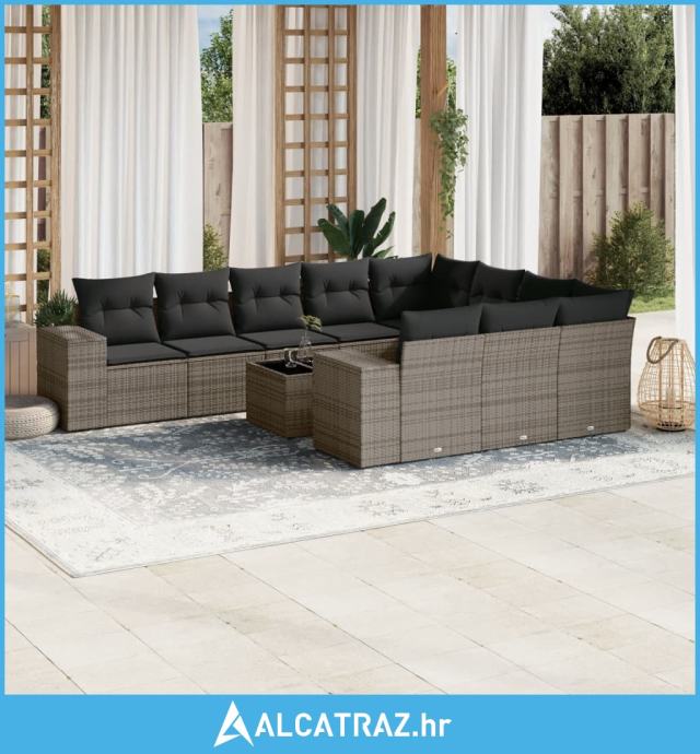 11-dijelni set vrtnih sofa od poliratana s jastucima sivi - NOVO