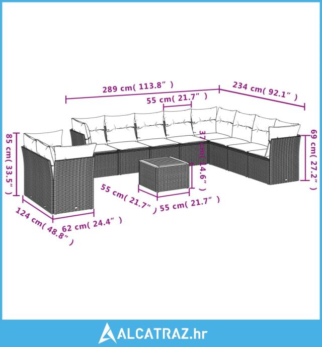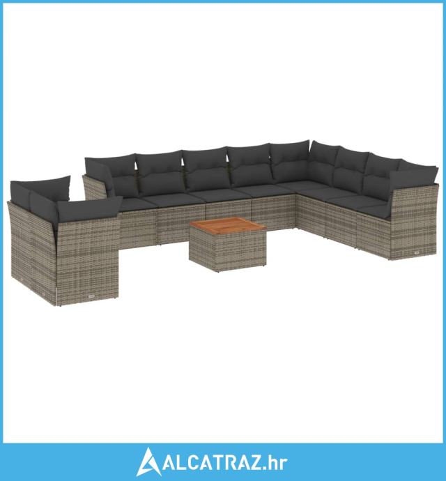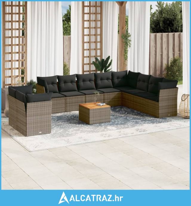 11-dijelni set vrtnih sofa od poliratana s jastucima sivi - NOVO
