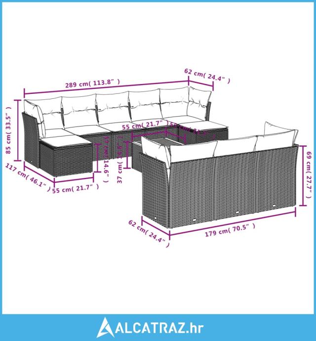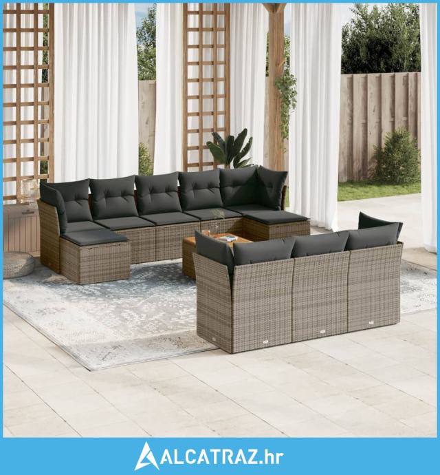 11-dijelni set vrtnih sofa od poliratana s jastucima sivi - NOVO