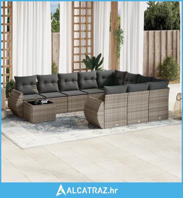 11-dijelni set vrtnih sofa od poliratana s jastucima sivi - NOVO