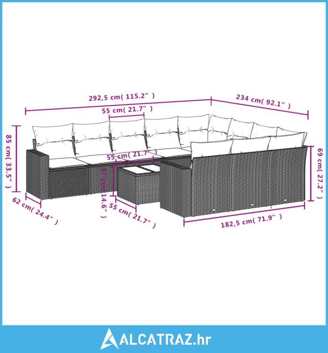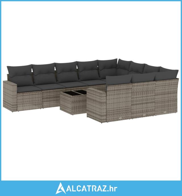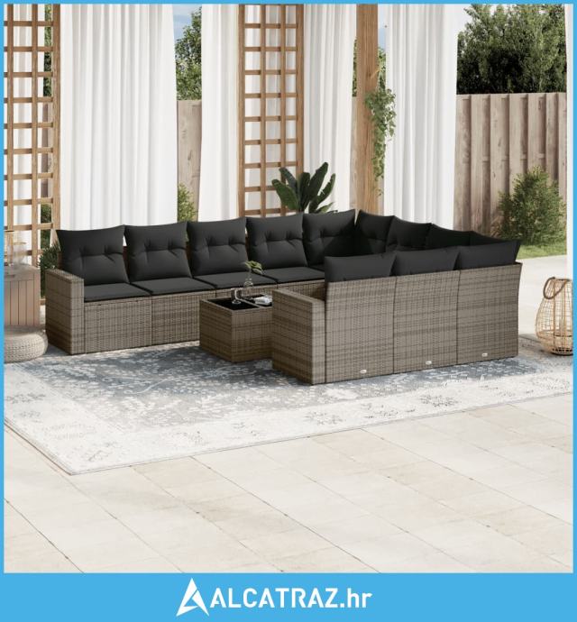 11-dijelni set vrtnih sofa od poliratana s jastucima sivi - NOVO