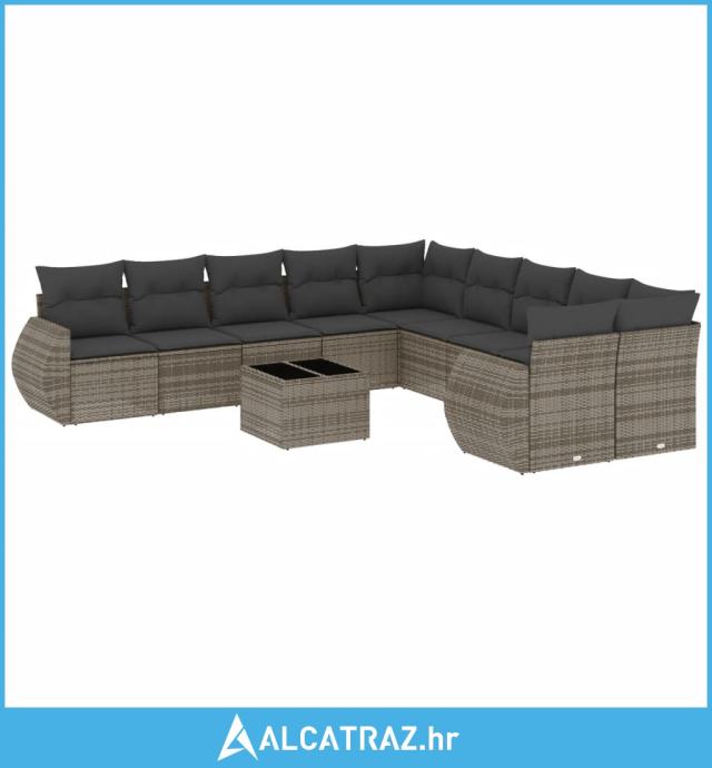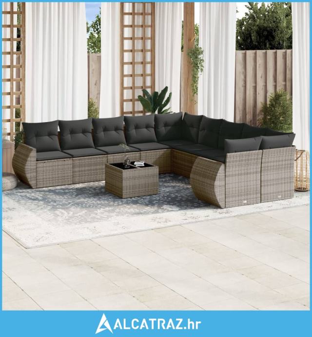 11-dijelni set vrtnih sofa od poliratana s jastucima sivi - NOVO