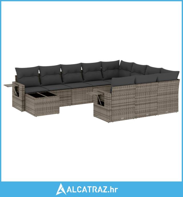 11-dijelni set vrtnih sofa od poliratana s jastucima sivi - NOVO