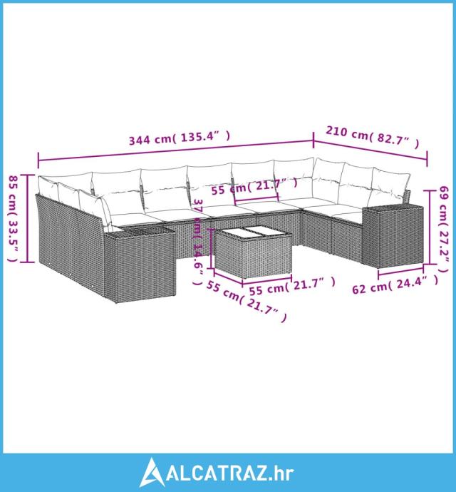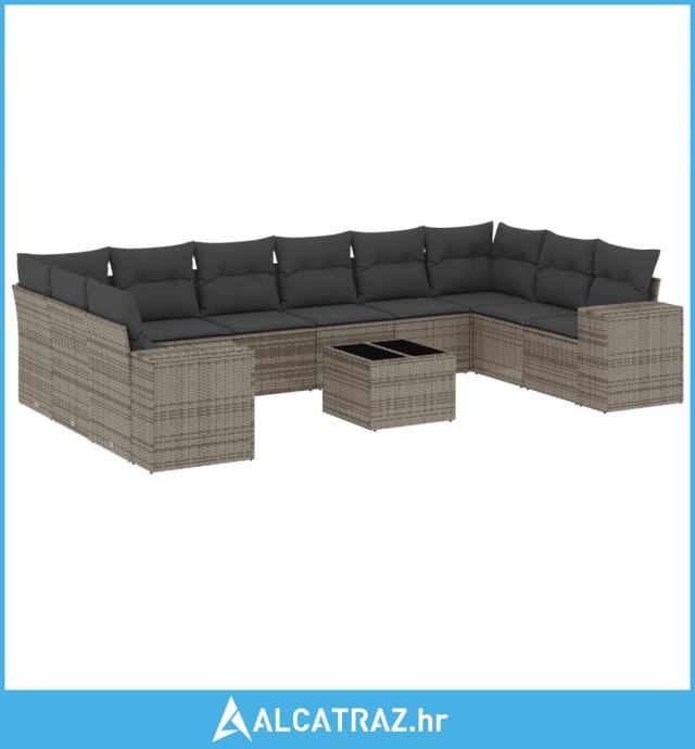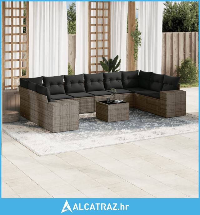 11-dijelni set vrtnih sofa od poliratana s jastucima sivi - NOVO