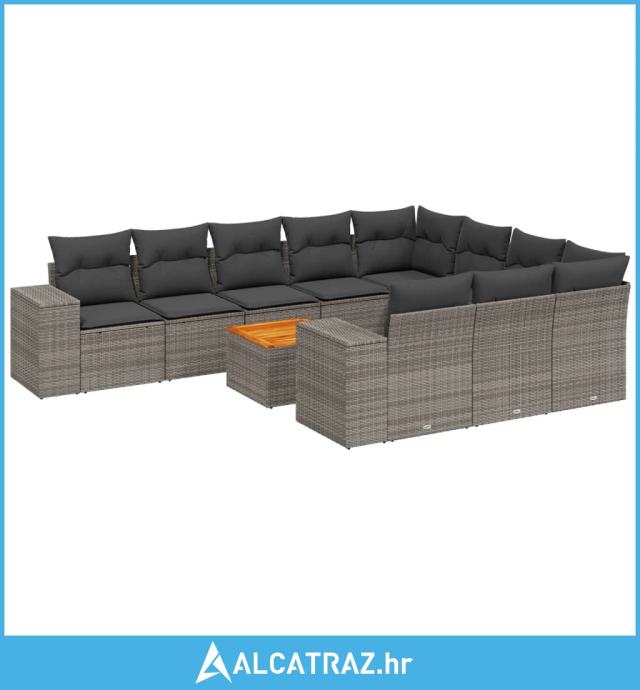 11-dijelni set vrtnih sofa od poliratana s jastucima sivi - NOVO