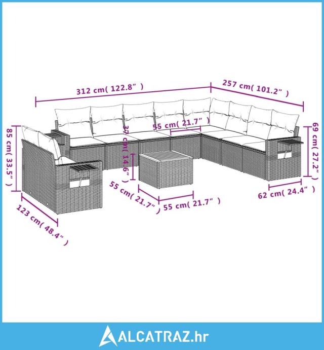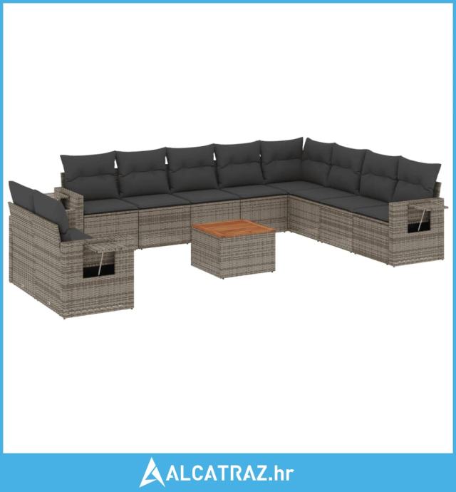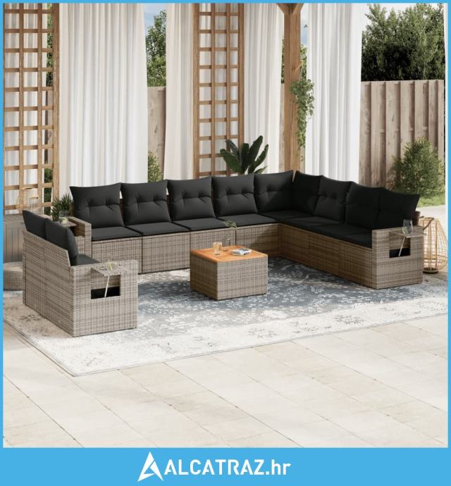 11-dijelni set vrtnih sofa od poliratana s jastucima sivi - NOVO