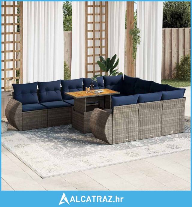 11-dijelni set vrtnih sofa od poliratana s jastucima sivi - NOVO