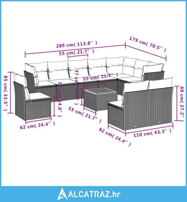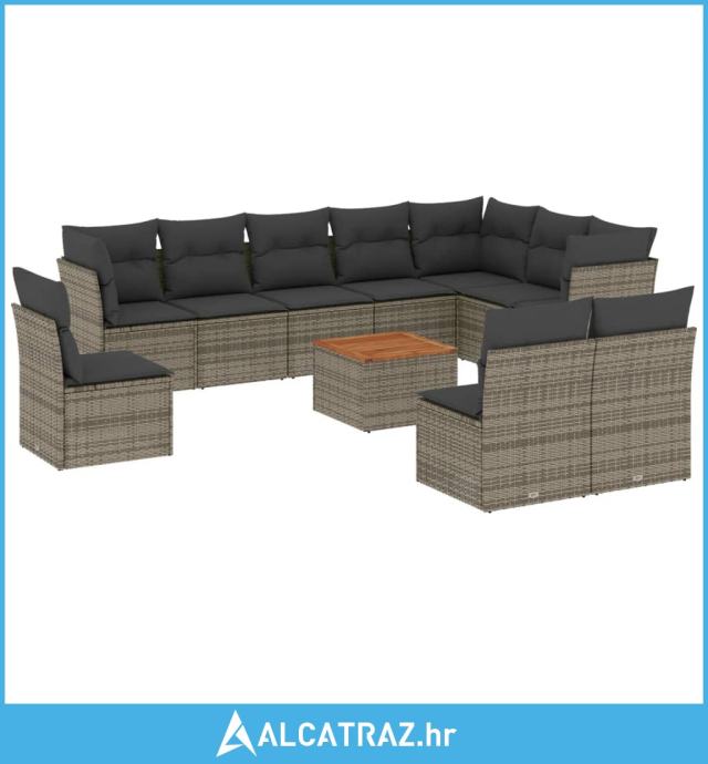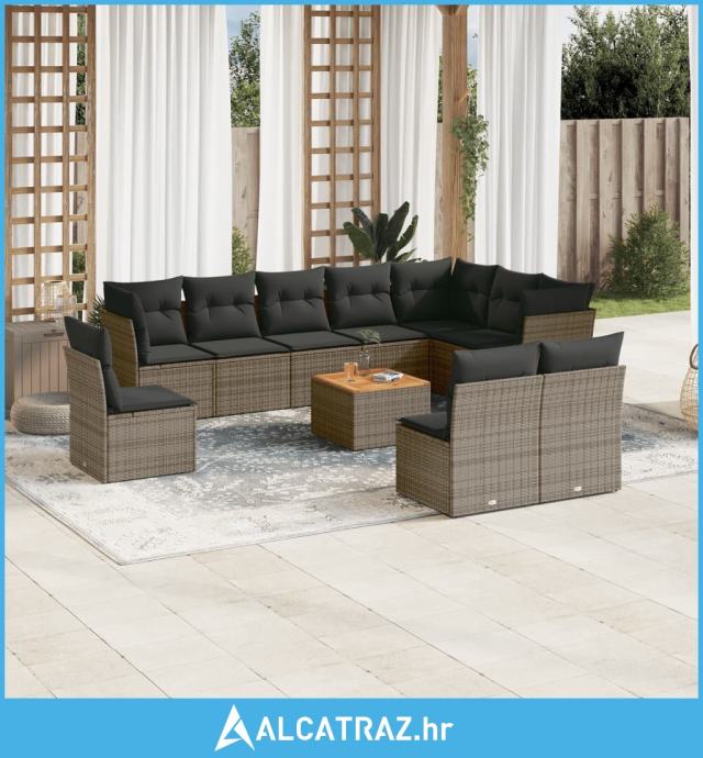 11-dijelni set vrtnih sofa od poliratana s jastucima sivi - NOVO