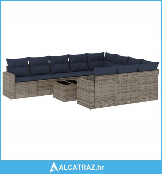 11-dijelni set vrtnih sofa od poliratana s jastucima sivi - NOVO