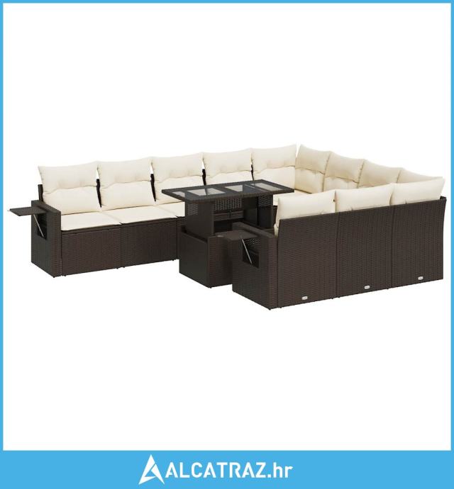 11-dijelni set vrtnih sofa od poliratana s jastucima smeđi - NOVO