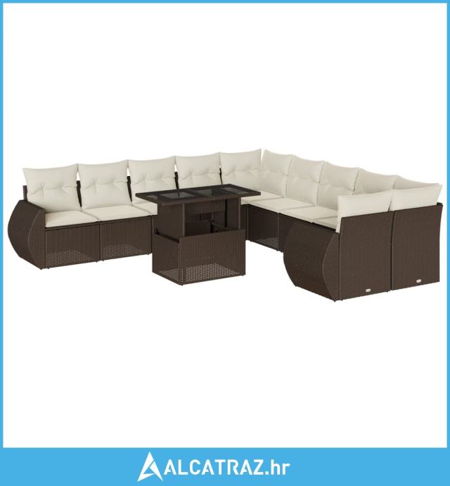 11-dijelni set vrtnih sofa od poliratana s jastucima smeđi - NOVO