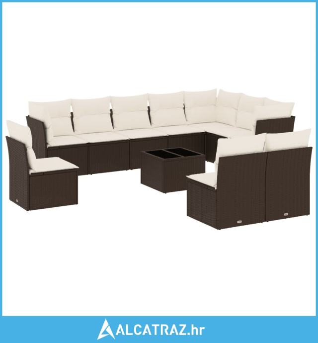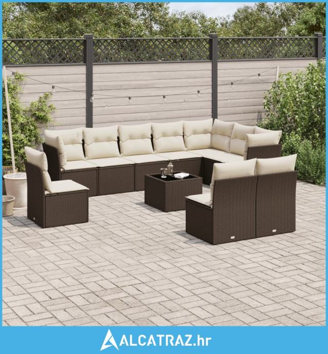 11-dijelni set vrtnih sofa od poliratana s jastucima smeđi - NOVO