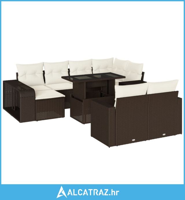 11-dijelni set vrtnih sofa od poliratana s jastucima smeđi - NOVO