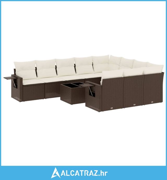 11-dijelni set vrtnih sofa od poliratana s jastucima smeđi - NOVO