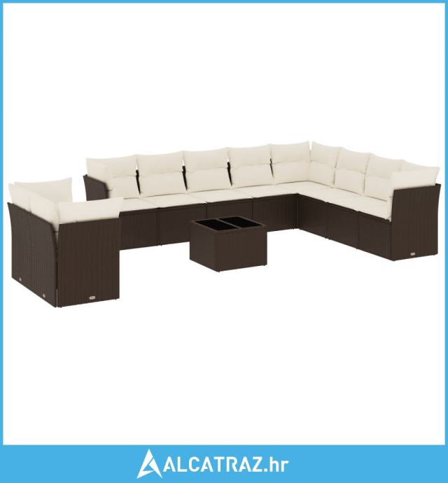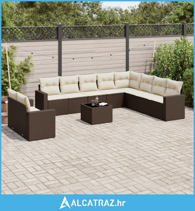 11-dijelni set vrtnih sofa od poliratana s jastucima smeđi - NOVO
