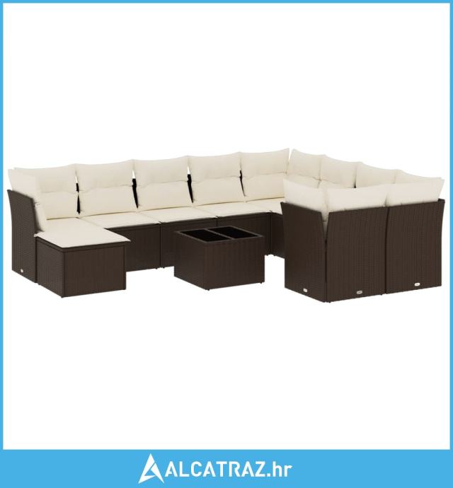 11-dijelni set vrtnih sofa od poliratana s jastucima smeđi - NOVO