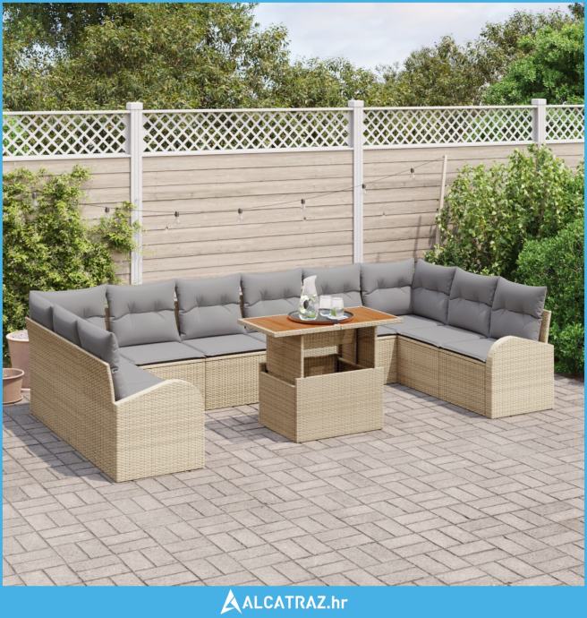 11-dijelni set vrtnog stola za objedovanje s jastučićima Bež Poli Rata