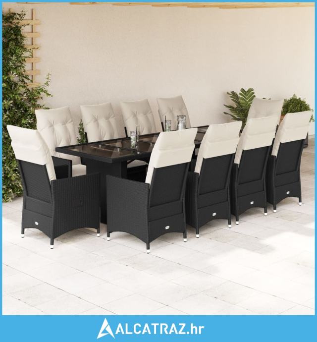 11-dijelni vrtni bistro set od poliratana s jastucima crni - NOVO